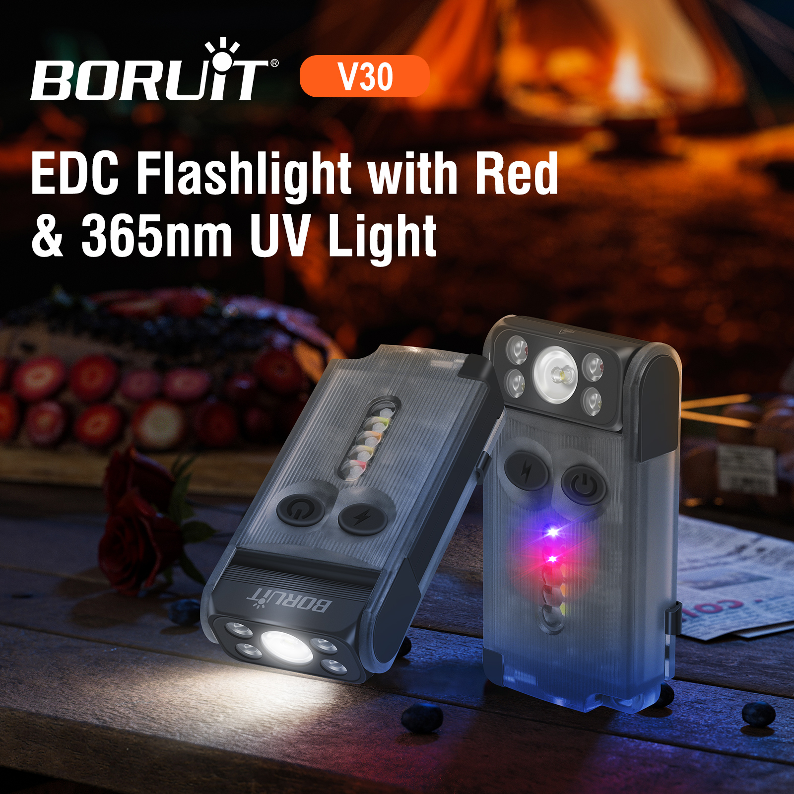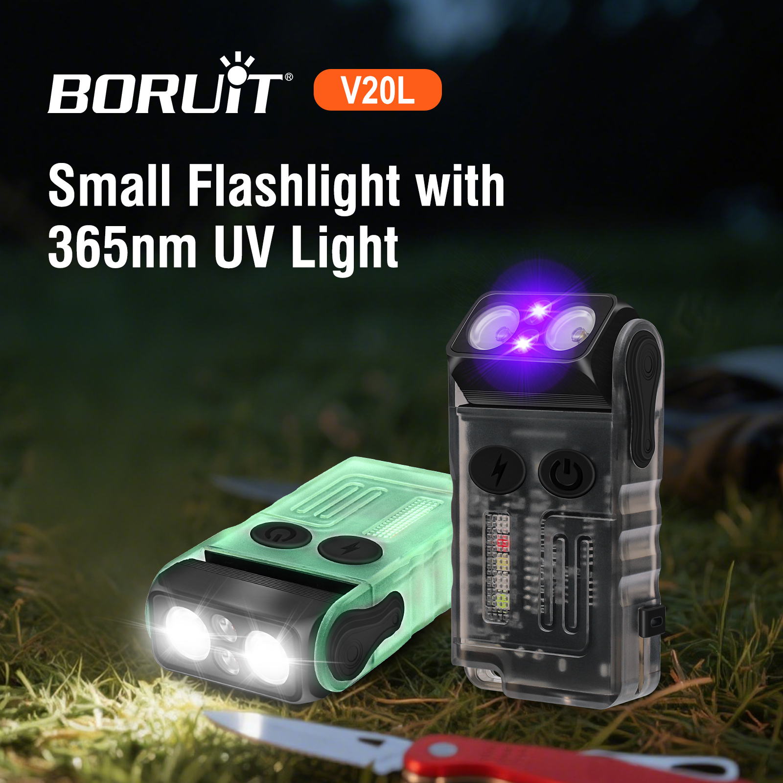 BORUiT V10 LED Keychain EDC Flashlight with Magnet 80DB Buzzer 365nm UV Pocket Lantern