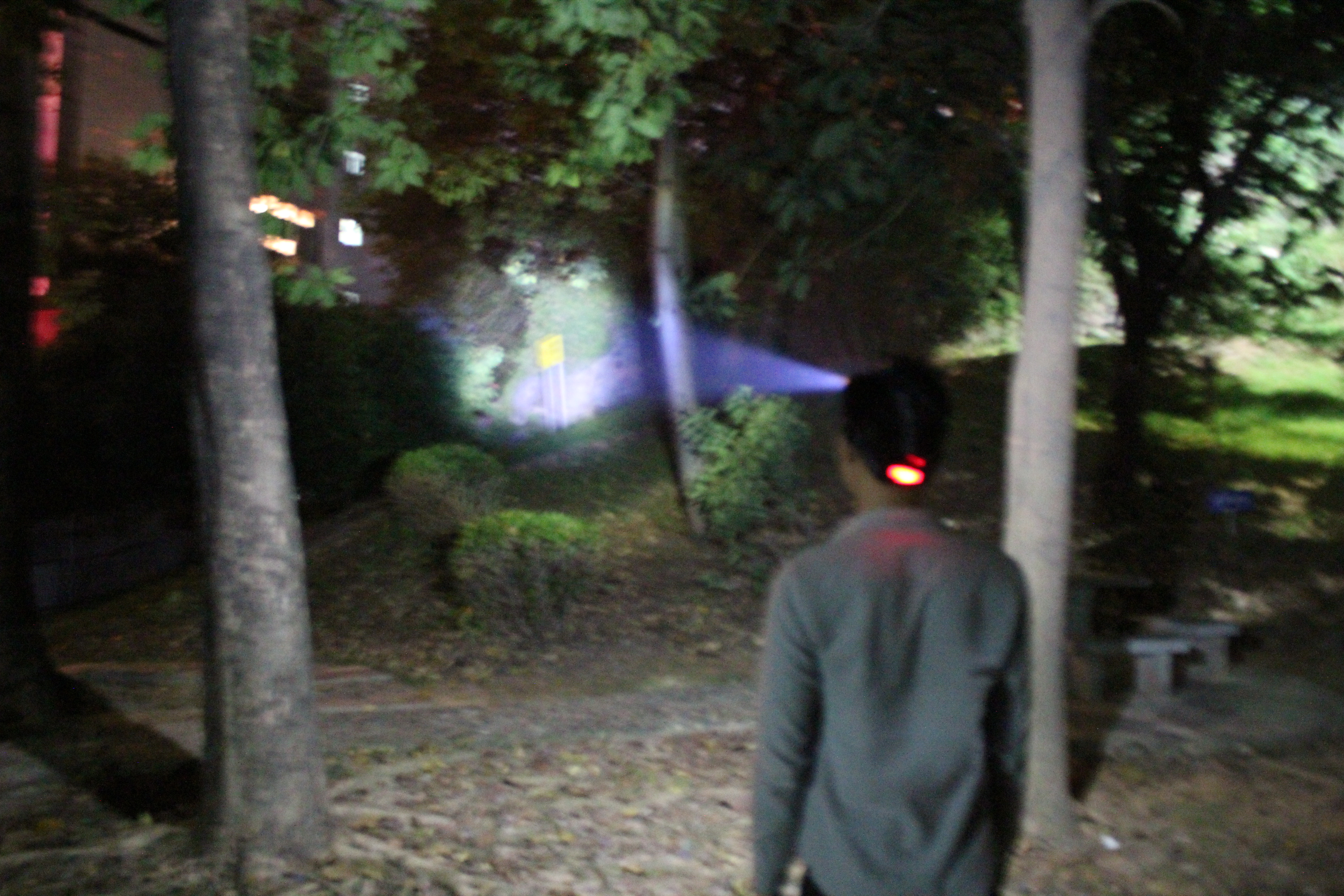 Once adjusted, the LED headlamp should sit snugly above your eyebrows without pressing too hard. Make sure the light is centered on your forehead to avoid shadows or tilting beams.