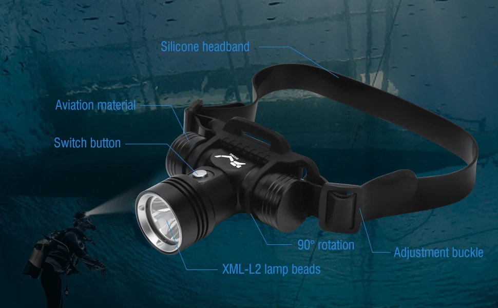 Ultra-bright LED advanced lamp beads. The real lumen value of the diving headlight is up to 1000 lumens, and the range distance is up to 200M. So whether you are working or exploring, this headlight will be your best choice.