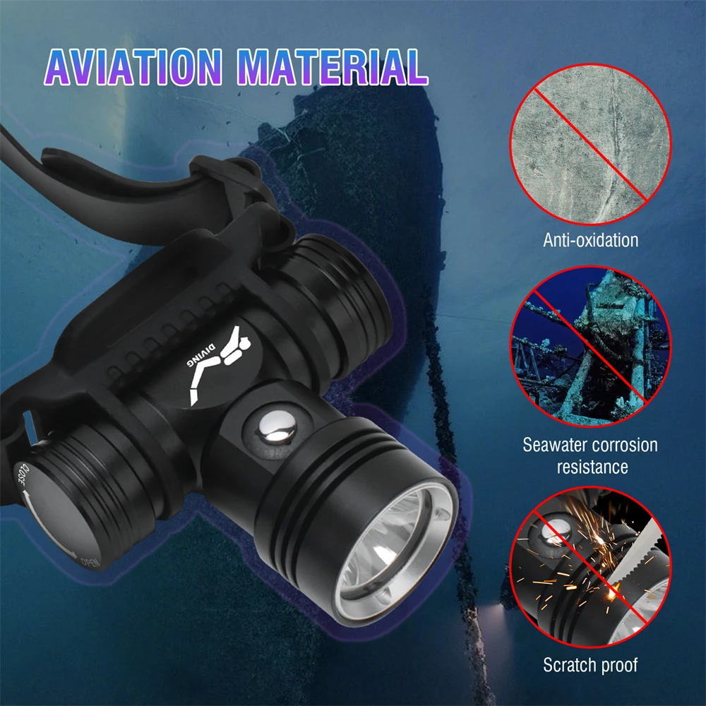 BORUIT rechargeable diving headlamp. The headlight is made of aviation grade aluminum alloy, which has excellent properties such as hard oxidation resistance, seawater corrosion resistance, scratch resistance, etc. It is very suitable for diving, swimming, underwater exploration, heavy rain and snow and other environments.