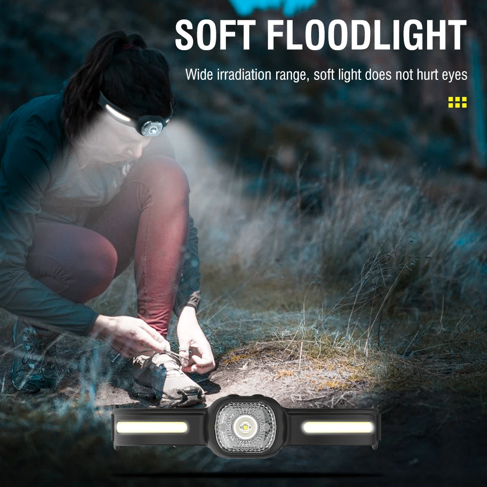LIGHTWEIGHT & PORTABLE - Our COB headlamp is made of skin-friendly soft silicone and adjustable comfortable headband, fit for any size of head.
