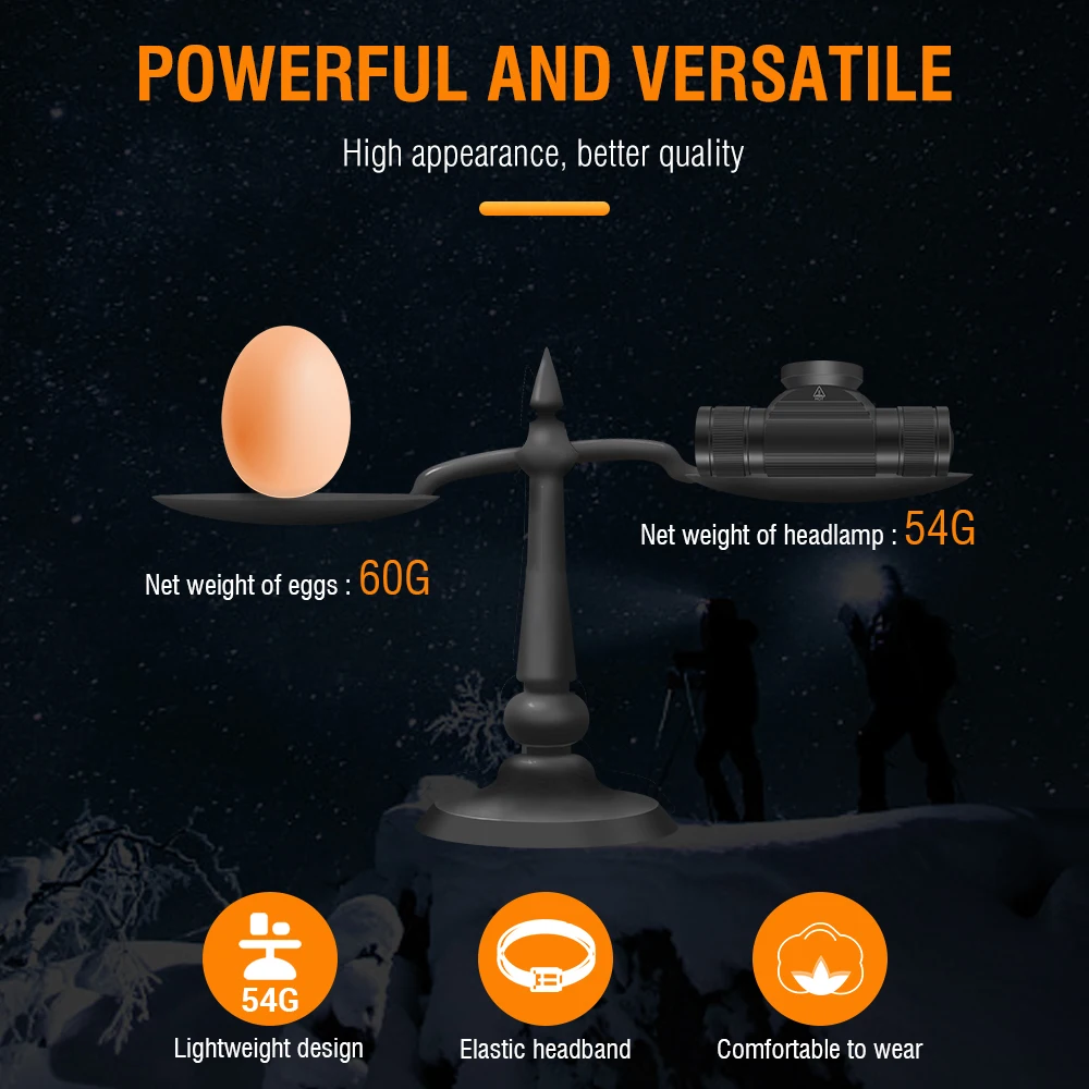 Lightweight and waterproof: The HP330 headlamp is made of lightweight aluminum alloy and has a waterproof rating of IP66, making it suitable for outdoor activities such as camping and hiking.