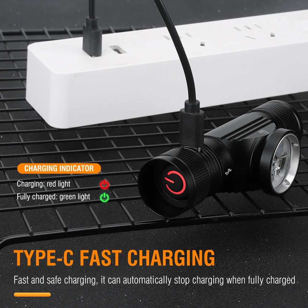 Long battery life: the headlamp can last up to 5.5 hours on low, 3 hours on medium, and 2 hours on high.Built-in USB TYPE-C charging port, anti-reverse insertion.