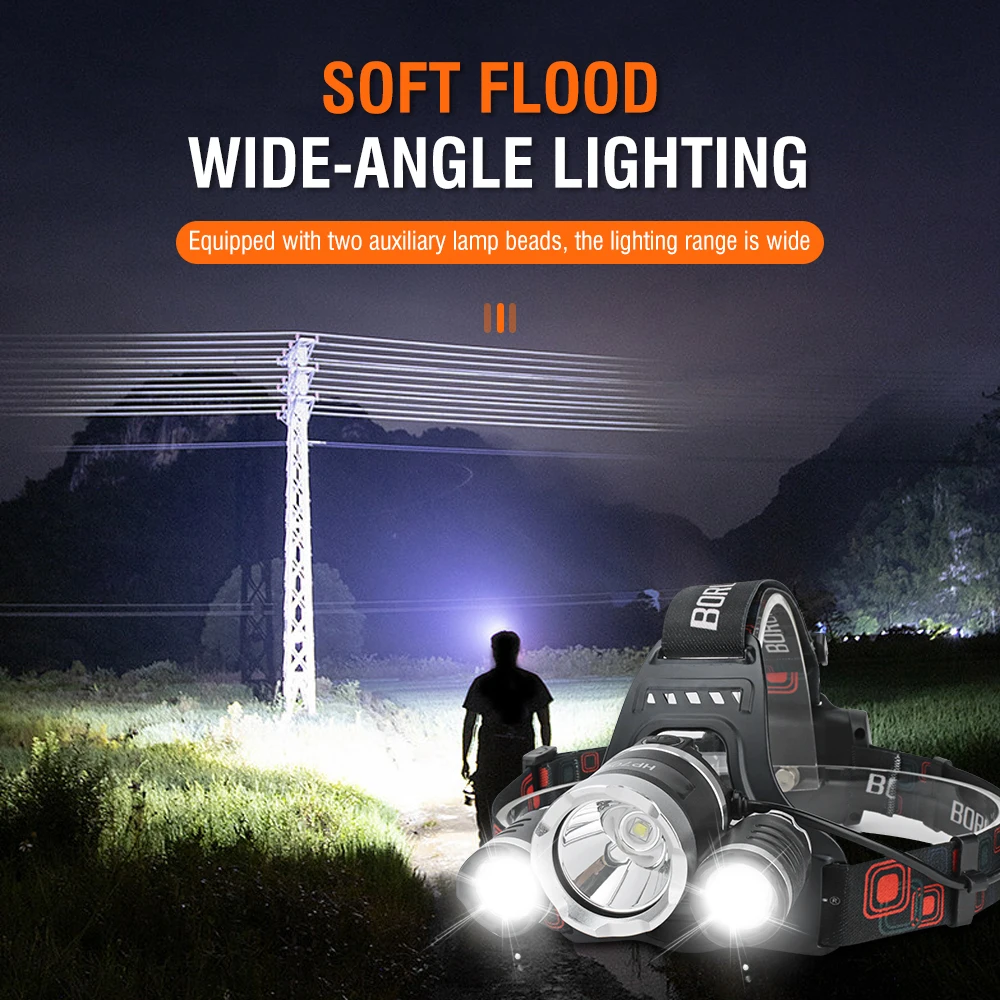 Super Bright LED Headlamp ➤➤ With imported LED beads headlamps ,maximum can up to 3000 lumens,the brightness setting offers up to 100 meters of visibility,giving you much more peripheral vision,ideal for night reading,car repairing ,fishing,running ,camping, hiking, cycling, climbing or other close up lighting occasions.