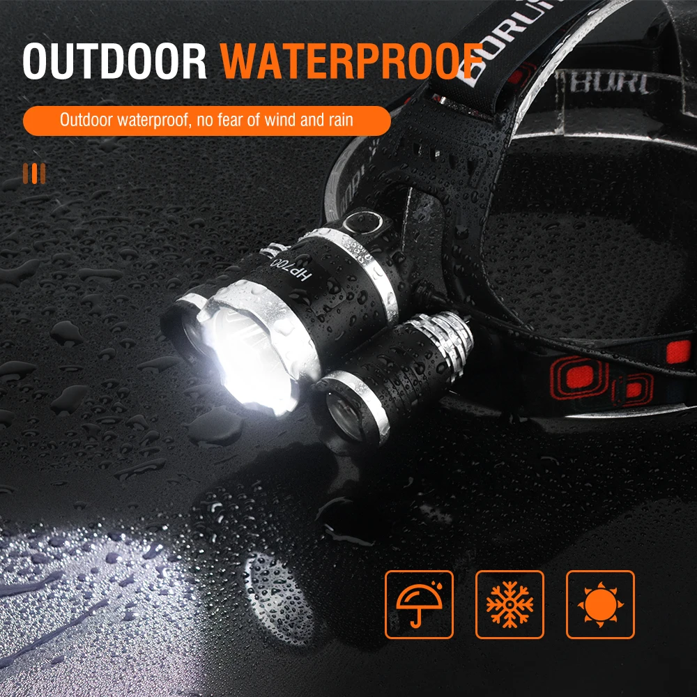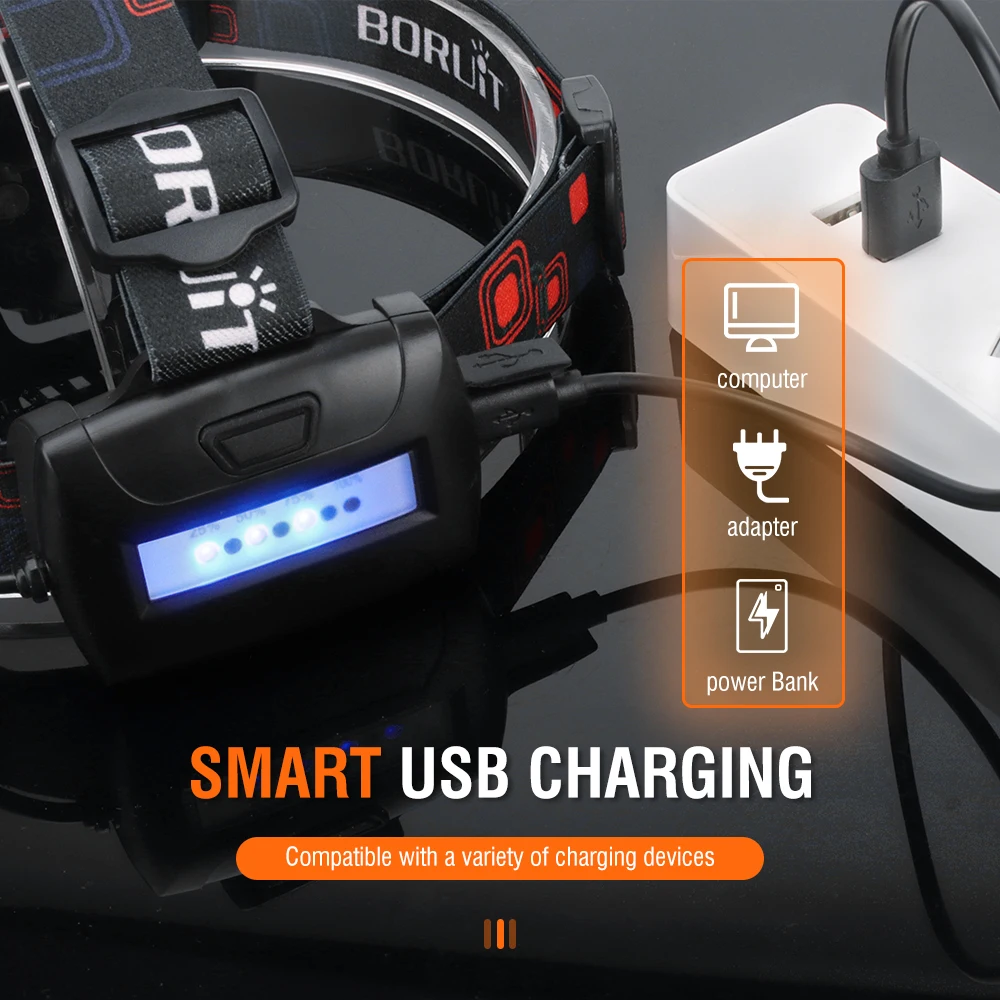 LED Rechargeable Headlamp ➤➤Built-in 1800mah rechargeable battery,long battery life,adopting micro USB charging port ,convenient and saving time .Equipped with blue light battery indicator and red light warning light on the battery pack,so you can check the indicator to know whether you need to charge your headlamp .