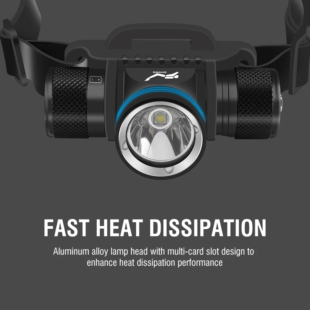 Ultra-bright LED advanced lamp beads. The real lumen value of the diving headlight is up to 1000 lumens, and the range distance is up to 200M. So whether you are working or exploring, this headlight will be your best choice.