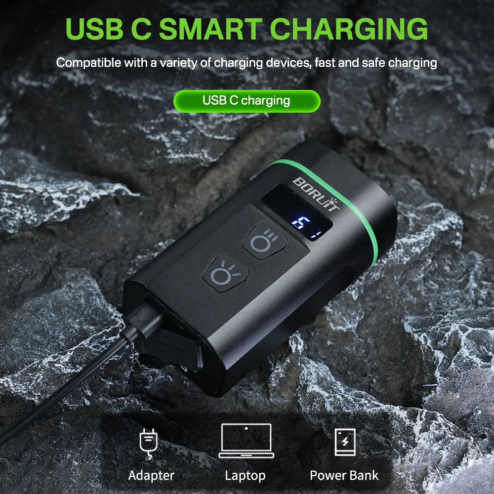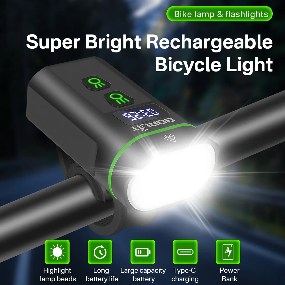 BORUiT Super Bright Bicycle Headlight; USB-C Rechargeable Bike Front Light; Waterproof GearLight; With Horn MTB Bike Accessories