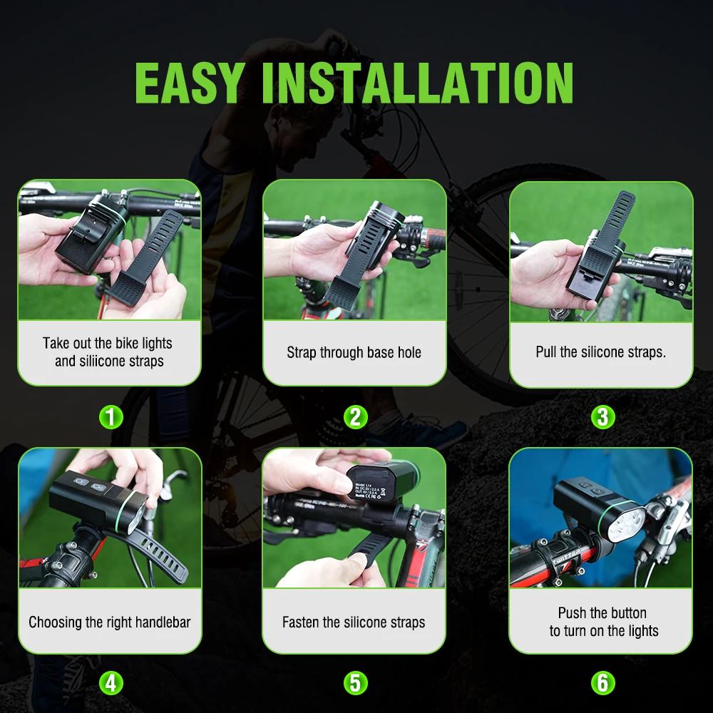 High-Performance Lighting: The L14 8-Light Bicycle Light features a powerful combination of high beam and low beam, providing up to 1800 lumens of brightness. With multiple brightness levels (high, medium, low) for both high beam and low beam, you can customize your lighting to suit any riding condition.