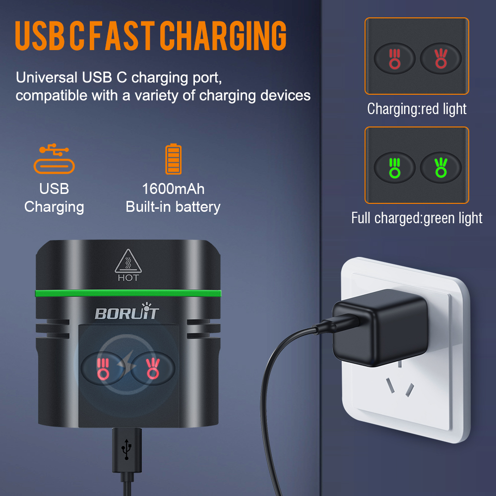 Lighting gear: High beam: low brightness (9H)-medium brightness (3.5H)-high brightness (3h), double-click to flash. Low beam low brightness (9h)-medium brightness (4H)-high brightness (3.5H), double-click to SOS. Long press for 2 seconds in any gear to shut down, with memory function.