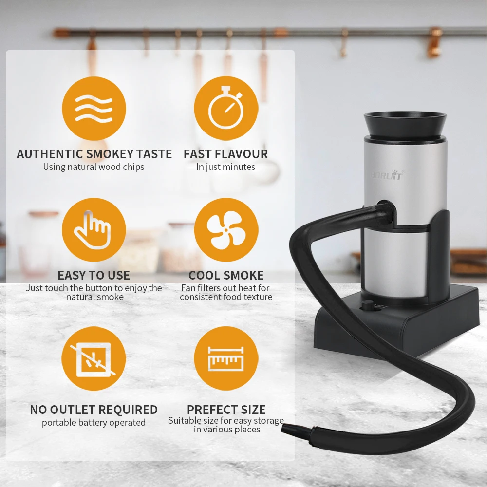 Smoke Infuser--No More Open Fires And Smokey Kitchens! Our Portable Mini Smoking Gun Produces Cold Smoke For Your Sous Vide Meat, Cocktails, Vegetables, Cheese, Salmon, Popcorn, Etc. Without Changing Their Texture Or Temperatures.