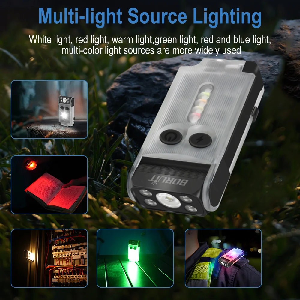 120 DB buzzer - BORUiT V30 built-in 120 decibel buzzer, press and hold the side light switch, the buzzer will emit an 120 decibel beeping alarm sound, accompanied by red and blue flashing lights, which serve as an alarm for outdoor activities such as night running and camping